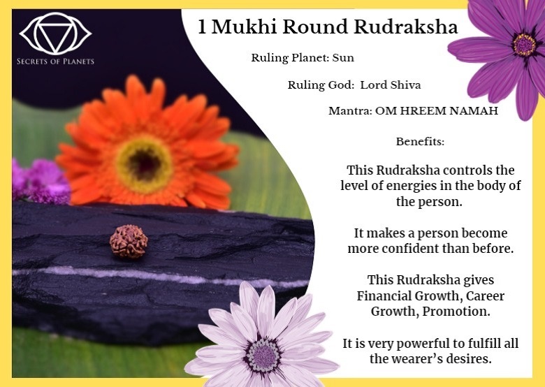 The One Mukhi Rudraksha reduces the malefic effects of the Sun from your chart hence it can be helpful to have a government job, for good relations with your father, for getting Visa or PR or Citizenship of any country and useful in any kind of job-works related to the Government.