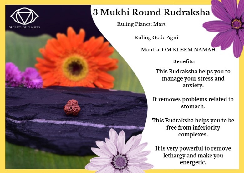 Since this Rudraksha represents Agni, it has the capacity to remove laziness and lethargy from the body and make you super active and energetic at all times. It keeps you warm. This bead can give you self confidence and remove the guilt feeling effectively. This Rudraksha is blessed to remove your sins of past and present life to make you feel lighter and better. All the past life karmas which are stopping you to succeed can also be released for non-stop progress in life. It is also associated with the trinity of supreme Gods Brahma, Vishnu and Mahesh.