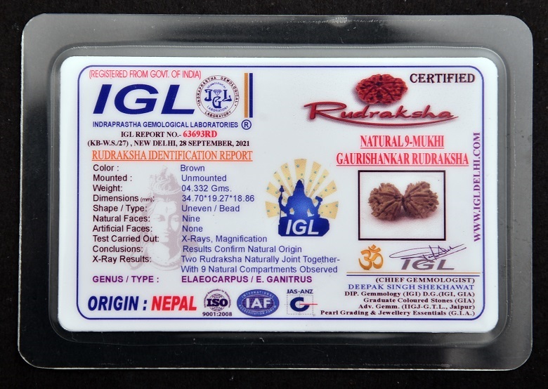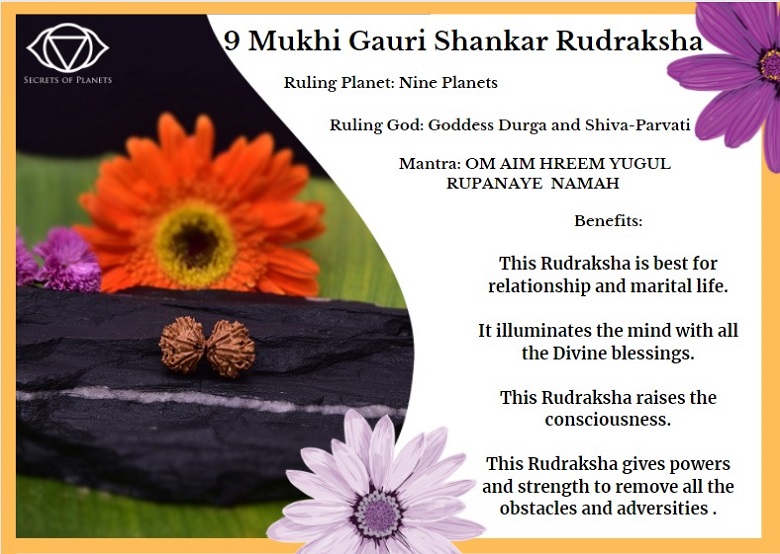 Gauri Shankar Rudraksha comes in different variants from Four Mukhi to Nineteen Mukhi. This Rudraksha features two naturally joined Rudraksha symbolizing the mind and soul of a person. This Gauri Shankar Rudraksha represents the divine unity of Lord Shiva and Goddess Parvati. This is the symbol of harmony, love, strong relationship and wonderful marital life. It improves and heal relationships. It brings great happiness in life. It strengthens the bond with your Spouse.